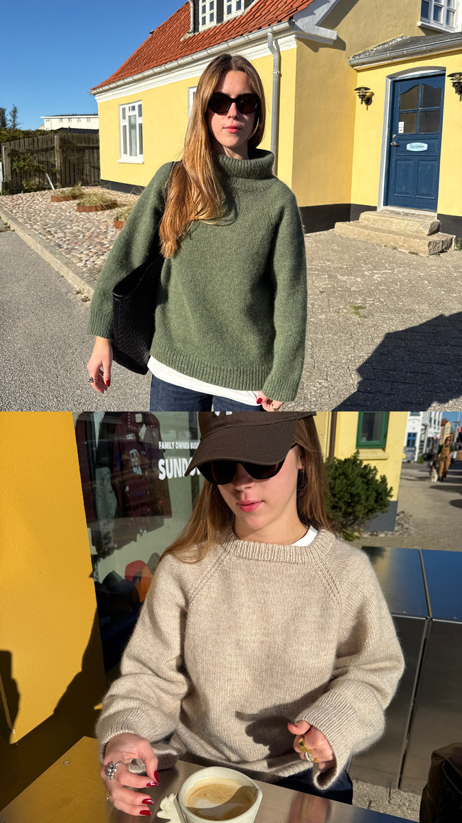 Wilma Sweater is ideal for the autumn and winter seasons and can be knitted with either a turtleneck or a folded neckline, depending on your desired look. The Wilma Sweater is suitable for both beginners and more experienced knitters. Throughout the process, you will also find video guides to help you step by step.